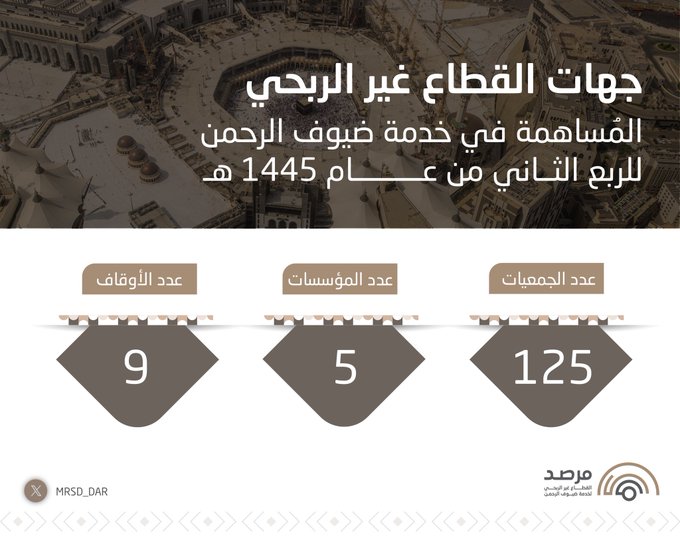 جهات القطاع غير الربحي في خدمة ضيوف الرحمن للربع الثاني من عام 1445 هـ