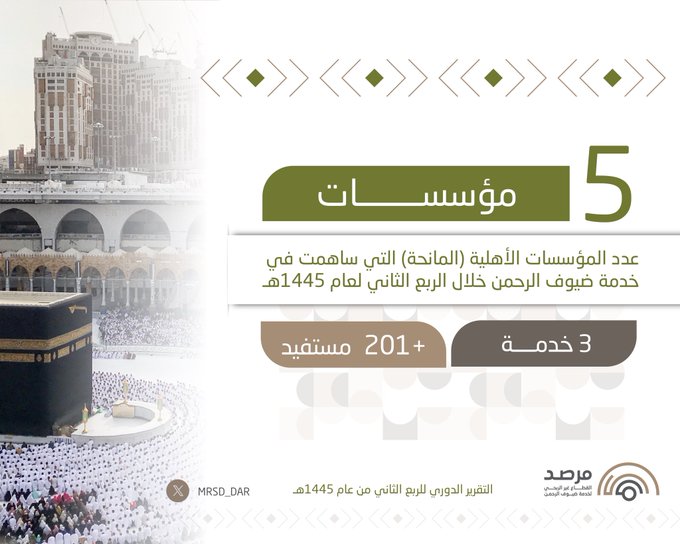 المؤسسات الأهلية المساهمة في خدمة ضيوف الرحمن خلال الربع الثاني من عام 1445هـ