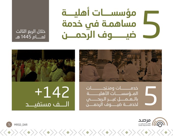 المؤسسات الأهلية المساهمة في خدمة ضيوف الرحمن خلال الربع الثالث من عام 1445هـ
