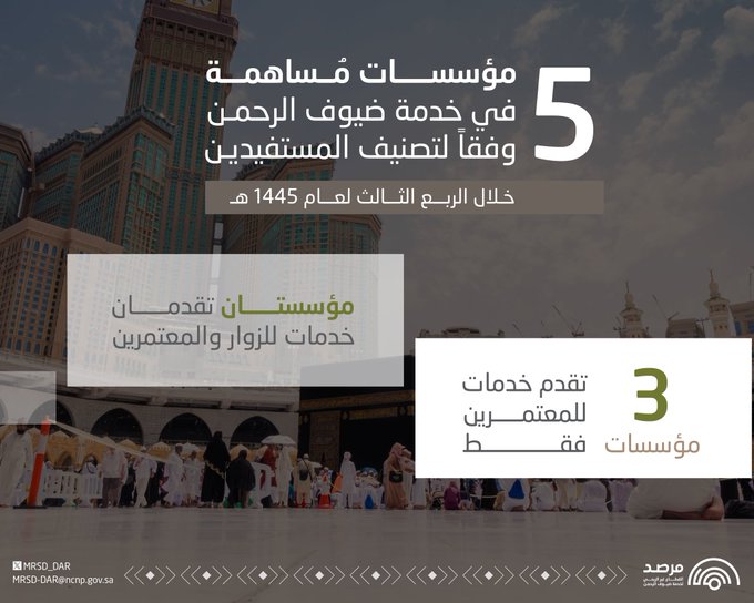 المؤسسات المُساهمة في خدمة ضيوف الرحمن وفقاً لتصنيف المستفيدين للربع الثالث من عام 1445هـ