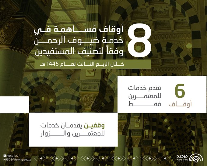 الأوقاف المُساهمة في خدمة ضيوف الرحمن وفقاً لتصنيف المستفيدين للربع الثالث من عام 1445هـ