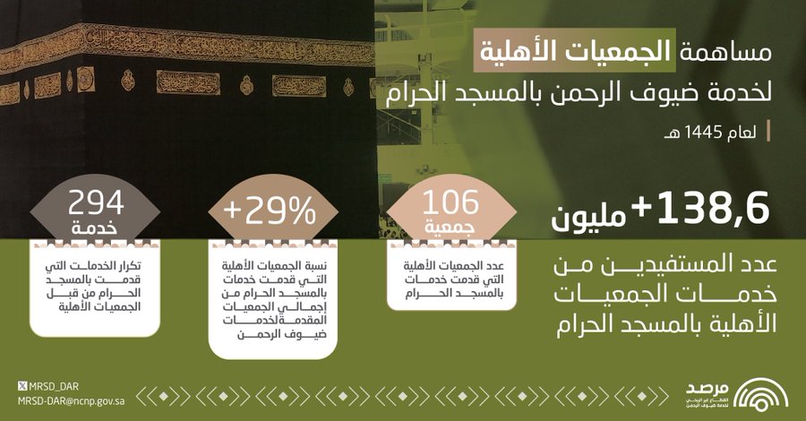 مساهمة الجمعيات الأهلية لخدمة ضيوف الرحمن بالمسجد الحرام خلال عام 1445هـ