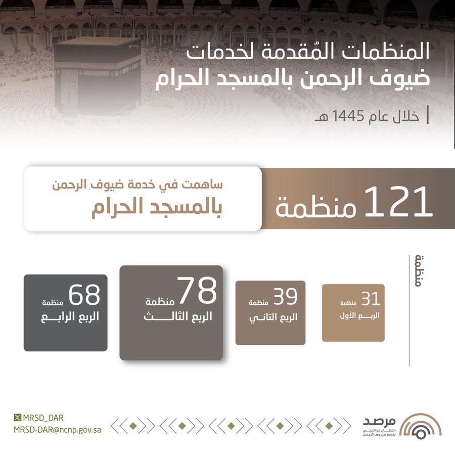 المنظمات المُقدمة لخدمات ضيوف الرحمن بالمسجد الحرام خلال عام 1445هـ
